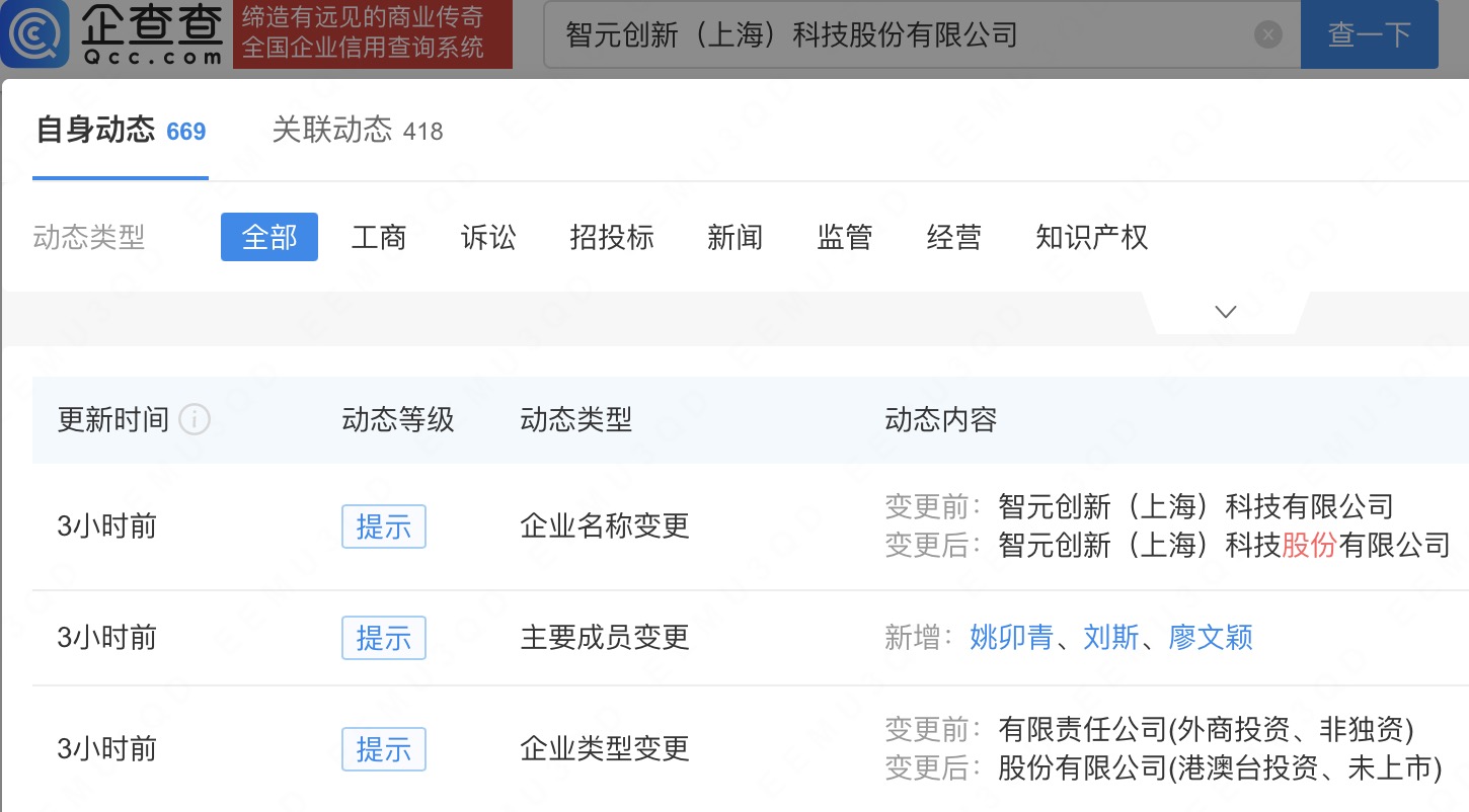 近日网上炒股配资官网,智元机器人关联公司智元创新(上海)科技有限公司发生工商变更,企业名称变更为智元创新(上海)科技股份有限公司,同时企业类型由有限责任公司(外商投资、非独资)变更为股份有限公司(港澳台投资、未上市)。企查查信息显示,该公司成立于2023年,法定代表人为邓泰华,经营范围包含:智能机器人的研发;服务消费机器人销售;智能机器人销售;人工智能理论与算法软件开发等。