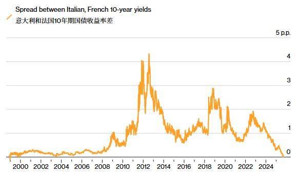 法国的借贷成本历史性地首次超过意大利,这表明投资者对财政政策的担忧正在重新塑造欧洲的债券市场。这一变化部分原因在于技术因素:用于衡量法国10年期基准国债收益率的债券到期日比同等意大利国债稍晚。不过,两国国债收益率趋同的趋势已持续多年。对资深市场人士来说,这一发展颇为引人注目——因为多年来,信用评级较低的意大利一直是欧元区财政挥霍的“典型代表”。如今,投资者担心的却是法国的财政赤字规模。劳埃德银行市场洞察主管山姆·希尔表示:“市场对法国政治和财政困境能迅速解决的预期可能会受到限制。”他补充道,法国债券仍将对更广泛的市场对预算赤字和债务问题的担忧保持敏感。