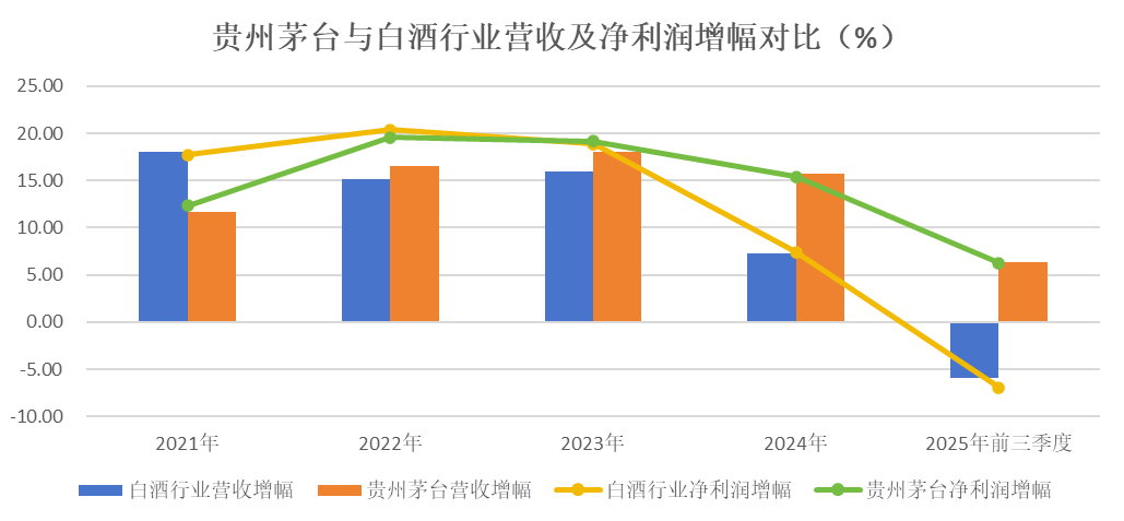 近日,白酒行业20家A股公司悉数披露2025年前三季度财报。整体来看,白酒行业面临营收、净利润双双下滑的局面。在此背景下,茅台发布的三季报,以稳健的成绩,引起各界关注和议论。